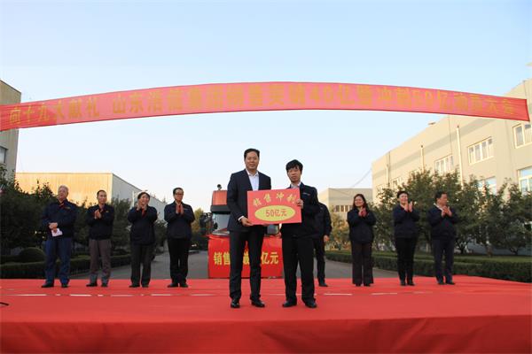 隨后,呂繼賢董事長向浩信機(jī)械總經(jīng)理頒發(fā)完成40億匾牌;向集團(tuán)營銷公司頒發(fā)沖刺50億匾牌。