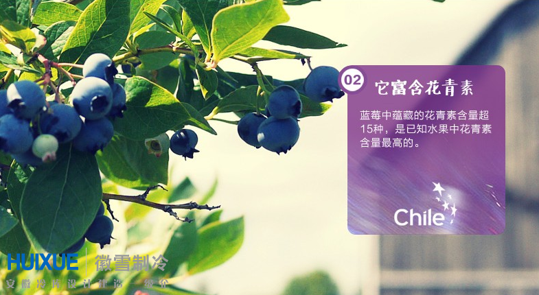 根據(jù)美Tufts 大學(xué)的分析,在 40 種具有抗氧化效力的蔬菜和水果中,藍(lán)莓的花青素含量排名第。藍(lán)莓所含有的花青素是所有的水果與蔬菜之中含量高的,而藍(lán)莓的花青素豐富的部分就是在它特有的紫色果皮部位。