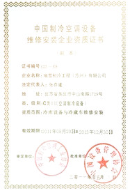 | 空調(diào)冷庫安裝維修資質(zhì) | 小精靈授權(quán)證書 | 制冷協(xié)會誠信聯(lián)盟會員 |